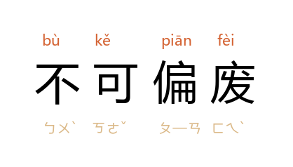 偏废:偏重这个放弃了那个。指对相互关联的事物不能偏重一个方面;废弃或忽视另一个方面;而应同时并重。