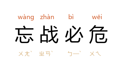例子《晋书·杜预传》:“预以天下虽安,忘战必危。”