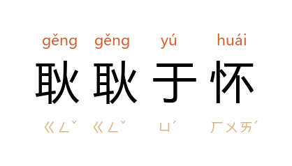 耿耿;形容有心事。老是放在心里;不能忘怀。形容有无法排遣的心事。