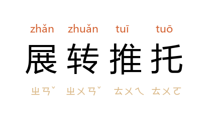 注音ㄓㄢˇ ㄓㄨㄢˇ ㄊㄨㄟ ㄊㄨㄛ
