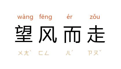 出处清·吴璿《飞龙全传》第54回:“今又不能尽力拒敌,反是望风而走。”