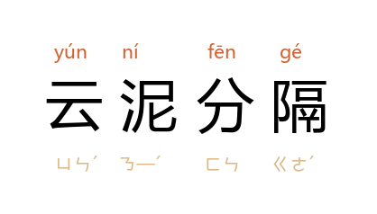 云泥:云在天,泥在地,高下悬殊。比喻双方相隔甚远,不能相见