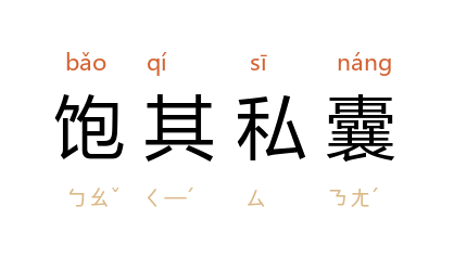 饱:满足;囊:口袋。指非法侵吞钱财,装入自己腰包。