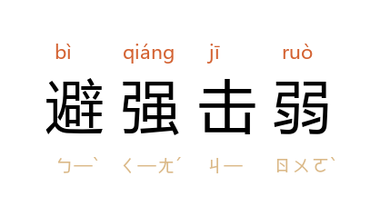 例子凡攻取之道,必先其易者……奔走之间,可以知其虚实强弱,然后避实击虚,避强击弱。《资治通鉴·后周世宗显德二年》