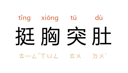 突:凸出。挺起肚皮,形容威武雄壮而傲慢的样子。