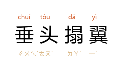 亦作“垂头塌翅”。形容受挫后萎靡不振的样子。