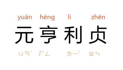 出处《周易·乾·文言》:“元者,善之长也;亨者,嘉之合也;利者,义之和也;贞者事之干也。君子行此四德者,故曰:乾,元亨利贞。”