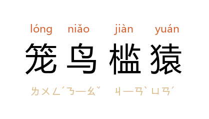 笼中鸟槛中猿。比喻受拘禁没有自由的人。