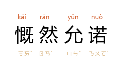 慨然:慷慨、爽快。形容豪不犹豫地答应下来。