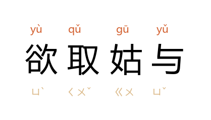 姑:暂且;与:给与。要想夺取他,得暂且先给他。指先付出代价以诱使对方放松警惕,然后找机会夺取。