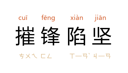 摧:摧毁;锋:锋利;陷:攻陷;坚:坚锐。破敌深入。