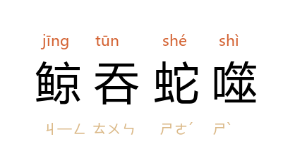 像鲸鱼和蛇一样吞食。比喻侵吞兼并。