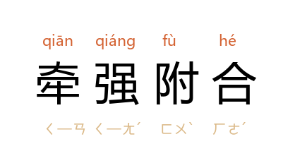 出处宋·朱熹《朱子语类》第67卷:“后来诸公解,只是以己意牵强附合,终不是圣人意。”