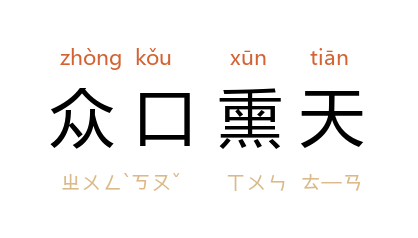 出处《吕氏春秋 离谓》:“毁誉成党,众口熏天。”