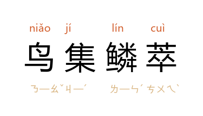 鳞:鱼;萃:聚集。象鸟类或鱼类那样聚集在一起。形容聚集得很多。