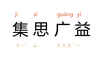 集:集中;思:思想;广:扩大;益:好处。集中群众的意见和智慧;取得更好的效果。也指集中众人的思想和智慧;广泛吸收好的意见。