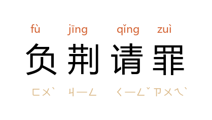 负:背着;荆:荆条;古时用来抽打犯人的刑具。背着荆条向对方请罪。表示主动向人认错赔罪;请求责罚。