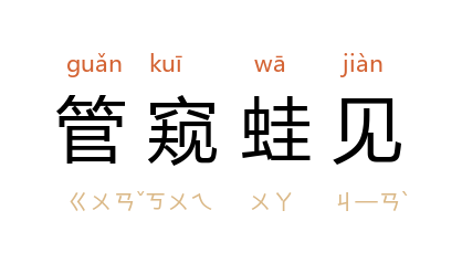 管窥:从管中看物。比喻所见者小;蛙见:井蛙之见。比喻见识狭隘,看问题短视。