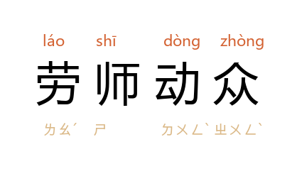 劳师:使军队劳苦;意为出动军队。原指出动大量军队;后也指动用大量人力;也有小题大作的意思。