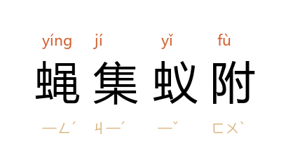 出处《明史 阉党传 崔呈秀》:“暮夜乞怜者,莫不缘呈秀以进,蝇集蚁附,其门如市。”