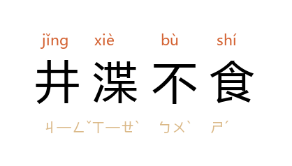 亦作“井渫莫食”。谓井虽浚治,洁净清澈,但不被饮用。比喻洁身自持,而不为人所知。语出《易·井》:“井渫不食,为我心恻。”王弼注:“渫,不停污之谓也。”孔颖达疏:“井渫而不见食,犹人修已全洁而不见用。”