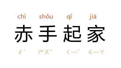 赤手:空手;起家:创立家业。形容在无基础和条件很差下创出一番事业。