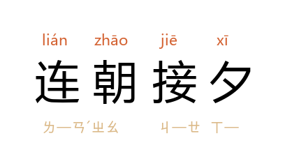 朝:早晨;夕:晚上。早晨接晚上,不分白天黑夜地连续干。
