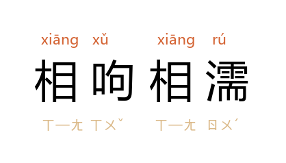 呴:吐口水;濡:沾湿。互相吐口水,湿润对方。比喻在困境中相互救助。