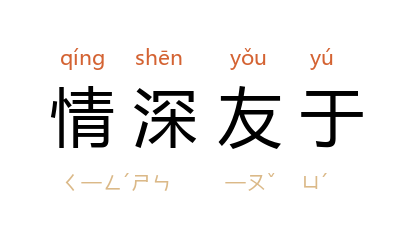 友于:本指兄弟相爱,后亦为“兄弟的”代称。比喻情谊比兄弟之间还要深厚。