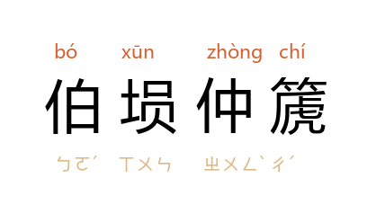 伯、仲:兄弟排行的次第,伯是老大,仲是老二;埙:陶土烧制的乐器;篪:竹制的乐器。埙篪合奏,乐音和谐。旧时赞美兄弟和睦。