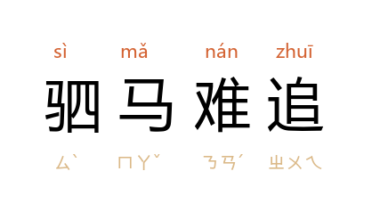 驷马:一车所驾的四匹马。形容话已说出;就无法追回或说话算数。