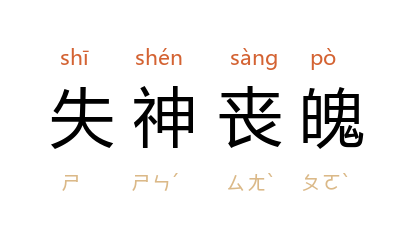 失:丧失;魄:人的精神灵气。形容心神不宁或惊慌之极