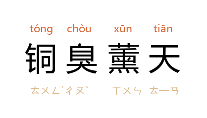 铜臭:铜钱的臭味。形容充满难闻的铜钱气味。指贿赂公行,风气败坏。