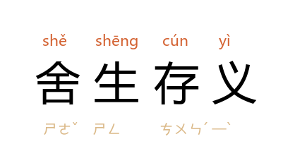 舍:放弃;存:保存。舍弃自己的生命去维护正义的事业。