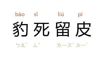 出处宋 欧阳修《王彦章画像记》:“公本武人,不知书,其语质,平生尝谓人曰:‘豹死留皮,人死留名。’盖其义勇忠信出于天性而然。”