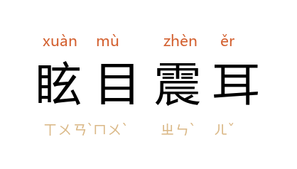 眩:眼花,迷乱;眩目:耀眼。形容色彩繁多使人眼花,声音巨大震耳欲聋。