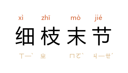细、末:微小。植物最细小的枝节。比喻事物无关紧要的方面或细小的环节。