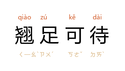 翘足:抬起脚。一举足的时间内即可等到。比喻很快就能实现。