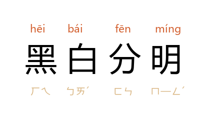黑、白:黑白两种颜色;明:清楚。黑白两色分得很清。比喻对是非好坏分得非常清楚。