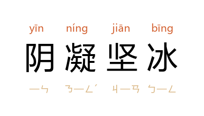 阴气始凝结而为霜,渐积聚乃成坚冰。比喻小人渐渐得势,地位渐趋稳固。