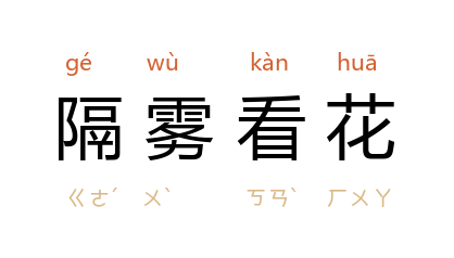 出处王国维《人间词话》:“觉白石《念奴娇》、《惜红衣》二词,犹有隔雾看花之恨。”