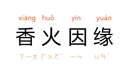 香火:供佛敬神时燃点的香和灯火。香和灯火都是供佛的,因此佛教称彼此意志相投为“香火因缘”。指彼此契合。