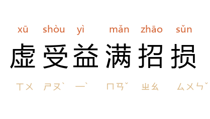 虚:虚心;受:得到;益:好处;满:自满,骄傲;招:招惹;损:损害。自满会招致损失,谦虚可以得到好处。