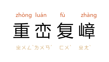 出处清·陈忱《水浒后传》第二回:“看那山势,虽不比梁山广,却也险峻,周围重峦复嶂,只有山前一条大路。”