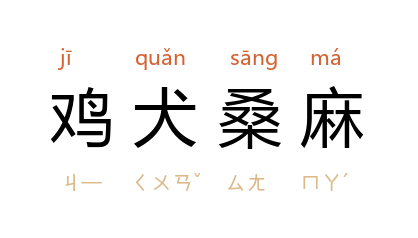 例子田里种着菜,篱笆里栽着花,大有鸡犬桑麻光景。(清 李宝嘉《文明小史》第五十三回)