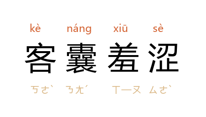 囊:口袋;羞涩:难为情。指旅途中缺乏钱财。
