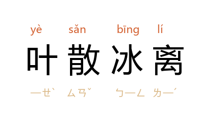 离:离散。树叶飘散,冰雪消融。比喻原先聚于一处的人或物分散消失。