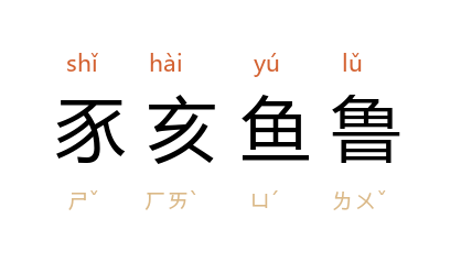 《吕氏春秋 察传》载有“己亥”误作“三豕”的故事。晋葛洪《抱朴子 遐览》:“书字人知之,犹尚写之多误。故谚曰:书三写,鱼成鲁,虚成虎。此之谓也。”后以“豕亥鱼鲁”谓书籍传写或刊印中的文字错误。