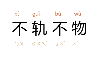 轨:轨道,引申为法规;物:典章文物。超出常规和不合乎法则。