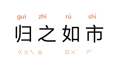 归:归附;市:市集。归附的人很多,像赶闹市一样。